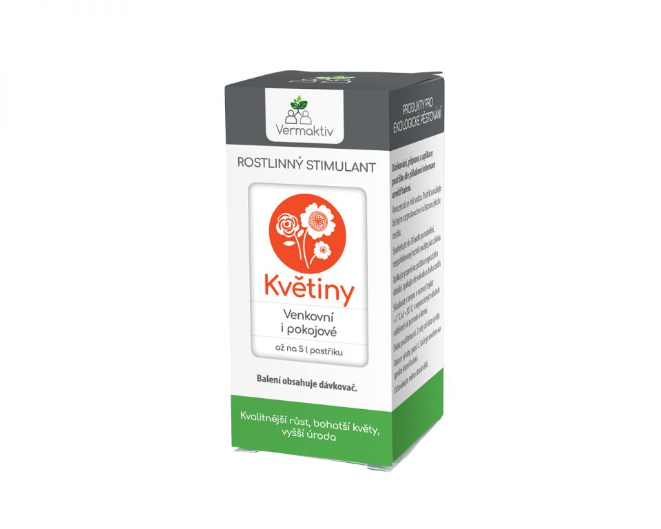 Růstový stimulant na květiny o objemu 35 ml je vhodný pro všechny pěstované květiny a podporuje je v růstu a zesiluje kořenový systém, díky němuž získají větší objem. Ošetřené rostliny jsou odolnější. Tlumí vzdušné houby a působí repelentně proti škůdcům. Vedlejším pozitivním efektem je zvyšování humusové vrstvy v půdě. Koncentrát se ředí s vodou v poměru 1 : 150 – cca 5 - 7 ml přípravku na 1 litr vody vystačí pro plochu až 10 m². Aplikuje se postřikem od počátku vegetačního období s odstupem cca 3 týdnů, celkem 4 krát za sezónu.