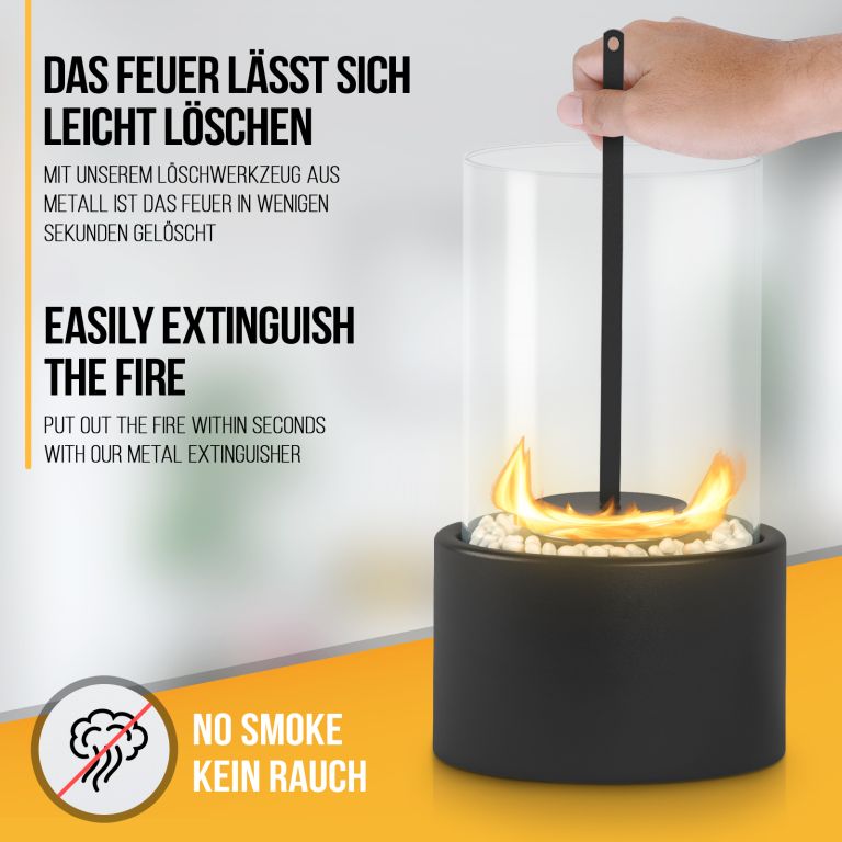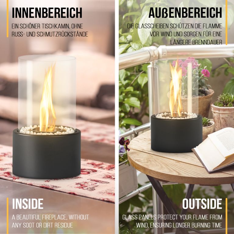 Stolní krb propůjčí vaší domácnosti zvláštní kouzlo. Malý a snadno přenosný stolní dekorativní krb se perfektně hodí na jakýkoli stůl, ať už uvnitř nebo venku. Jeho sestavení a použití je velmi snadné a nevyžaduje žádnou montáž. Stačí naplnit nádrž a užít si útulné večery. Krb nevyžaduje k plné funkčnosti žádnou instalaci ani konstrukci, jako je např. komín, ventilace, elektrické nebo plynové připojení. Navíc oproti klasickým krbům tento stolní krb je nenáročný na údržbu – neprodukuje žádné saze ani nečistoty.