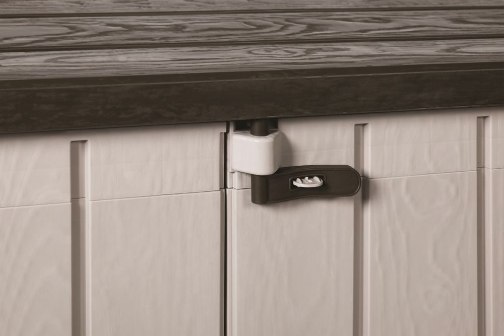 EKOLOGIE A ODOLNOST VŮČI POČASÍ: Tato skříň není pouze praktická, ale také odolná. Vyrobená z recyklovaného plastu, odolává nejen UV záření, ale také různým povětrnostním vlivům, což z ní činí dokonalého partnera pro Vaši zahradu. S možností uzamykání navíc můžete mít jistotu, že Vaše cennosti jsou v bezpečí.
