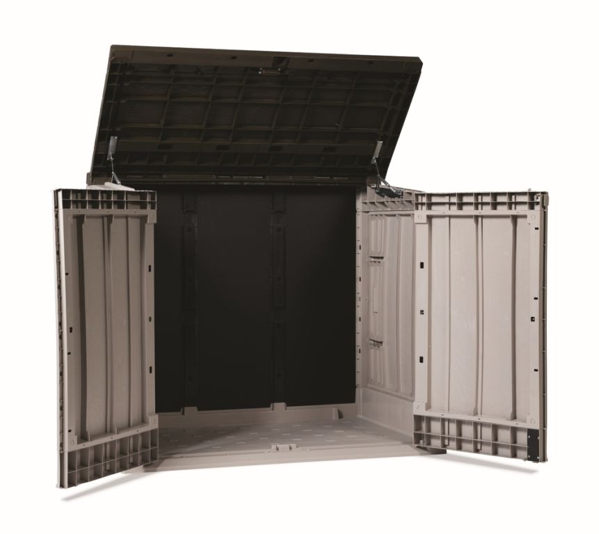 OBJEM 1 270 L: S kapacitou až 1 270 litrů můžete uskladnit veškeré zahradní nářadí, nábytek nebo dokonce hračky, čímž si udržíte svou zahradu v dokonalém pořádku a bez nepořádku.