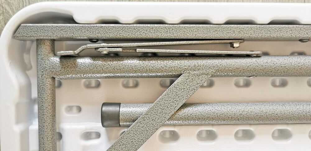 Skládací stůl z velice pevného materiálu HDPE s ocelovou konstrukcí.