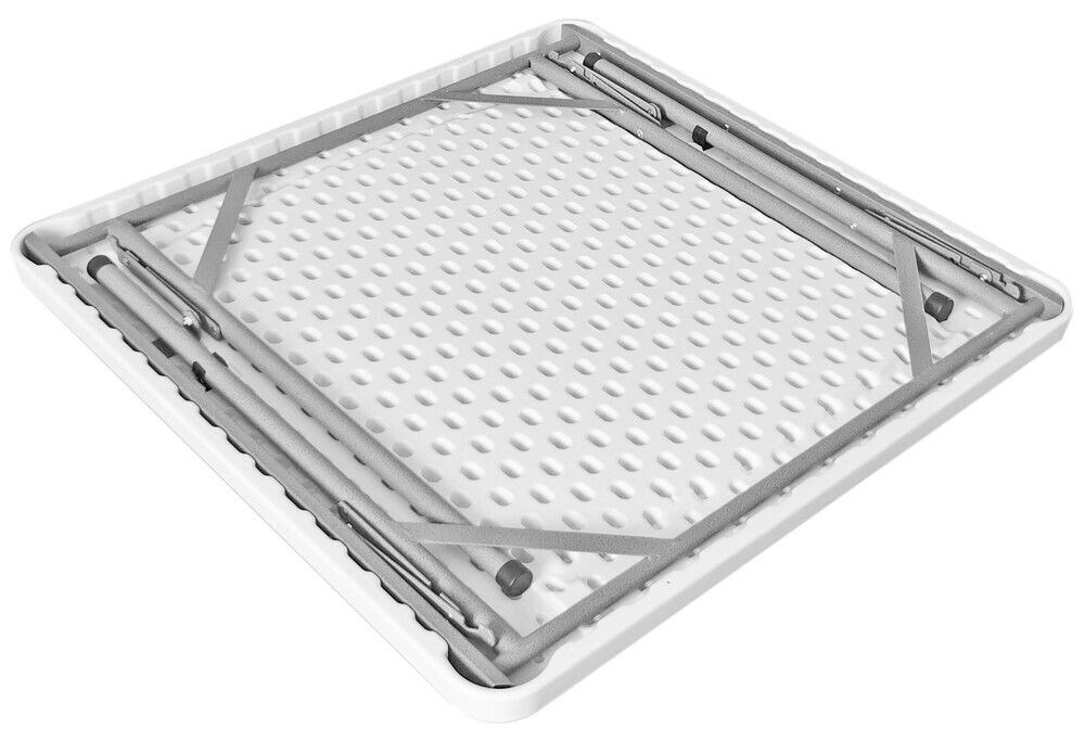 Skládací stůl z velice pevného materiálu HDPE s ocelovou konstrukcí. Konstrukce je ošetřena kladívkovou barvou. Stůl je vhodný do interiéru i exteriéru. Ideální pro cateringové, campingové aktivity, recepce a konference. Stůl je díky možnosti složení velice jednoduše uskladnitelný - ve složeném stavu jsou jeho rozměry 87 x 87 x 5,5 cm. Ke stolu lze zakoupit cateringová křesla a vytvořit velmi pěknou a především praktickou soupravu.