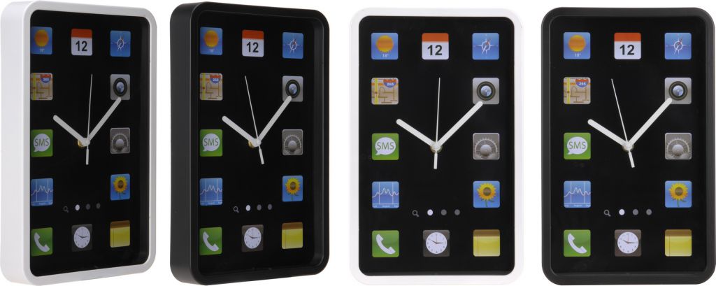 Stylové hodiny můžete umístit na zeď nebo na stůl či poličku, hodiny by neměly chybět žádnému "jablíčkáři" tedy fanouškovi produktů Apple. Vzhled hodin imituje iphone apps.