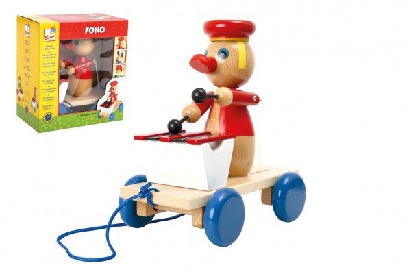 Muzikální Pinocchio na barevné základně se při tahání hračky pohybuje a hraje u toho na xylofon. Jemné a milé tóny vykouzlí úsměv na tváři každého dítěte. To přináší při tahání hračky dvojnásobnou radost.