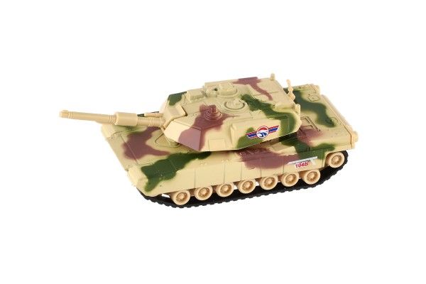 Plastový model tanku na setrvačník, se zvuky a světlem. Bezva hračky pro všechny milovníky maskovacích barev. Konkrétní barvu nebo druh výrobku není možné z technických důvodů zvolit, objednávce bude přidělena náhodná varianta dle skladových možností.