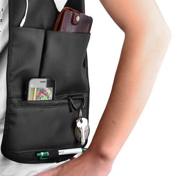 Je známé, že se muži neradi zatěžují tažkami či baťohy a nosí vše po kapsách, které klíče, peněženka, mobil a spousta jiných drobností, nadouvají a trhají. S touto vychtávkou tomu už tak nebude. Pohodlně se připne a sedí jako přišitá, takže vám nikde nepřekáží, a navíc můžete mít všechny cennosti blízko u sebe. Taška je vhodná pro nošení tabletu, iPhone, klíčů, pera, pasu, MP3 atd. Jedna kapsa se dá zapnout, takže z ní nic nevypadne. Jistě si tohoto praktického pomocníka velmi rychle oblíbíte.