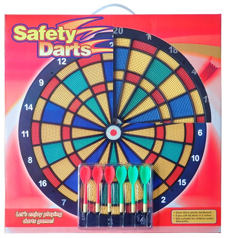 Terč - soft - dírkovaný, 45 cm, + 6 šipek s plastovými hroty.