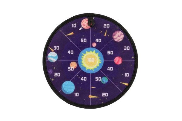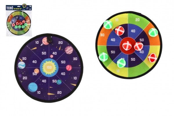 Terč na suchý zip dostane kluky i holky. Je to veselá hra, při které se vaše děti naučí mířit a házet . Nechte vaše děti soupeřit mezi sebou. Cílem hry je hodit co největší čísla. Jejich sčítáním se děti procvičí i v matematice. Terč na suchý zip má dva designy. Jedna strana terče je barevná s čísly, druhá je v motivu vesmíru s čísly. Terč má očko na zavěšení.