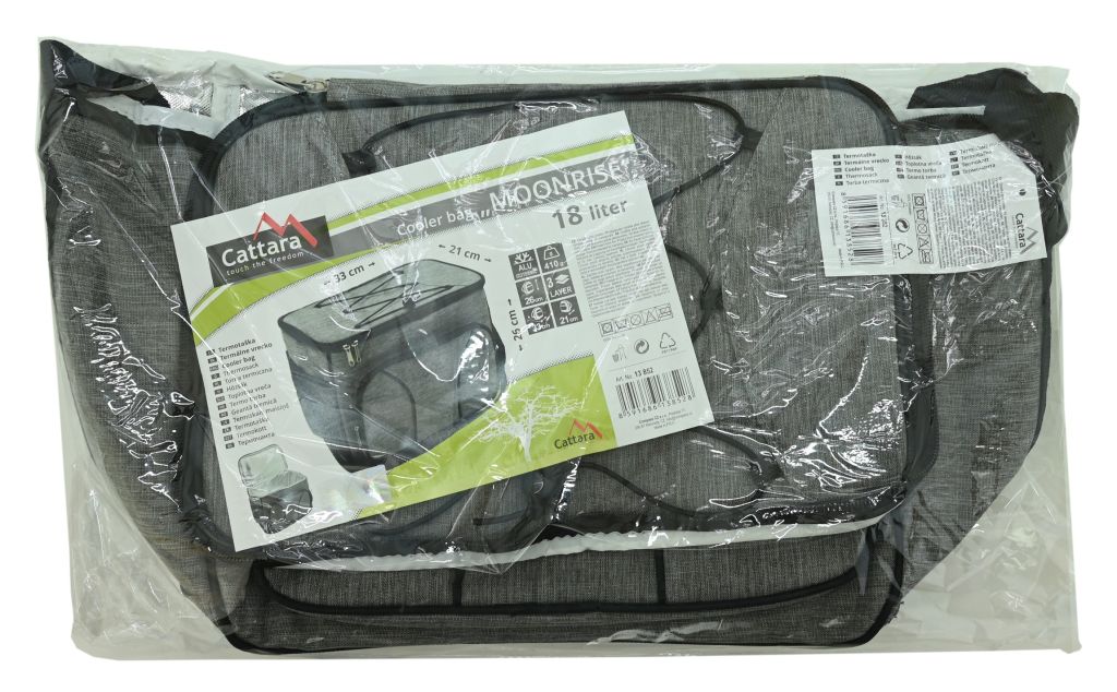 Taška je vyrobena z polyesteru, s vnitřní ALU izotermickou vrstvou s celkovými rozměry 26 x 21 x 33 cm.