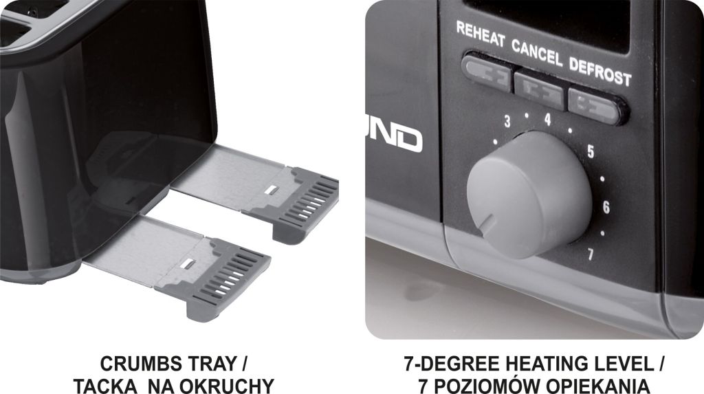 Topinkovač pro opečení 4 krajíců chleba. Pro zajištění preferovaného stupně opečení je k dispozici sedm nastavitelných výkonostních stupňů. Součástí topinkovače jsou dvě misky na drobky, ulehčující čištění. Napájení pomocí 230V zajistí 0,75 m dlouhý kabel, který lze uschovat uvnitř topinkovače.