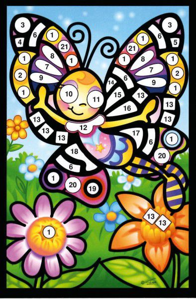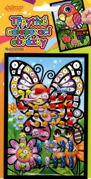 Na obrázky s natištěnými čísly nalepujete třpytivé samolepky. Vznikne nádherný barevný obrázek. Vhodné od 6 let. Velikost obrázku 15 x 10 cm.