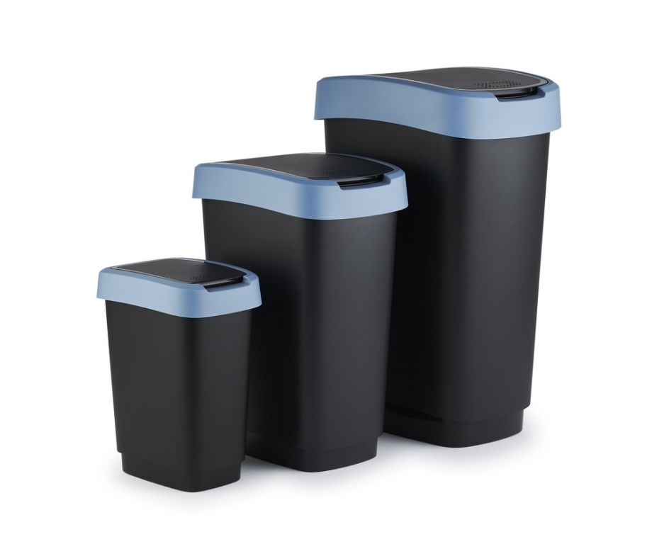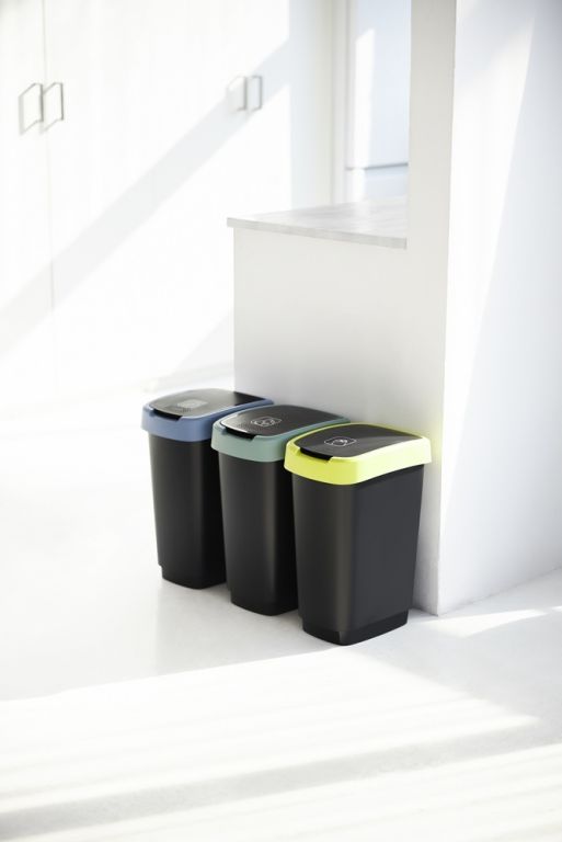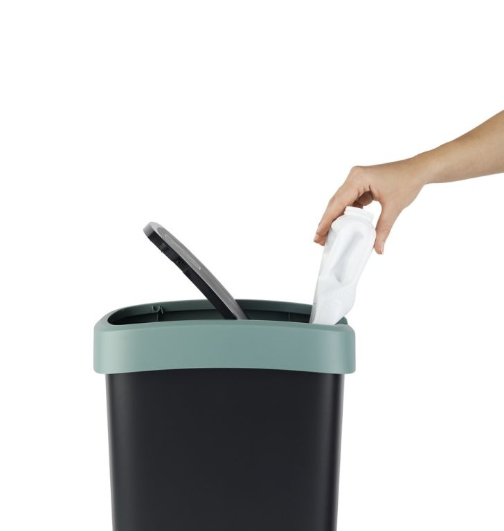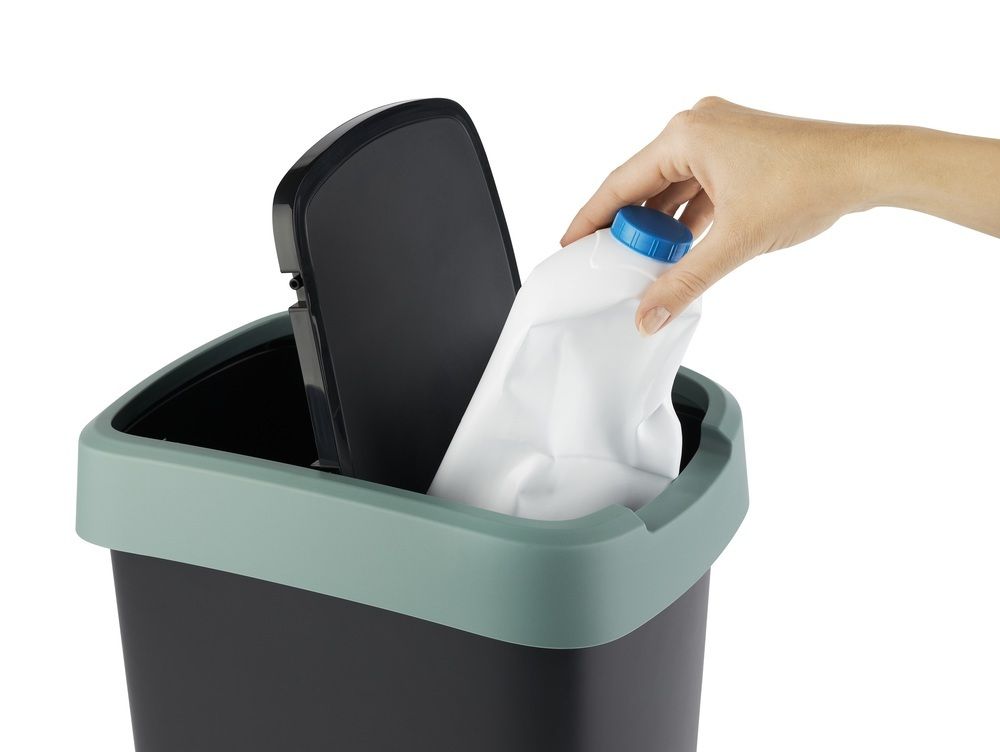 Plastový odpadkový koš s odklápěcím víkem. Dva způsoby otevření koše. Kvalitní materiál a provedení od švýcarské značky Rotho.