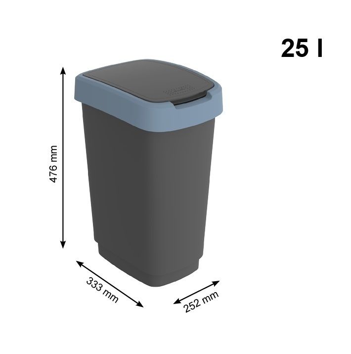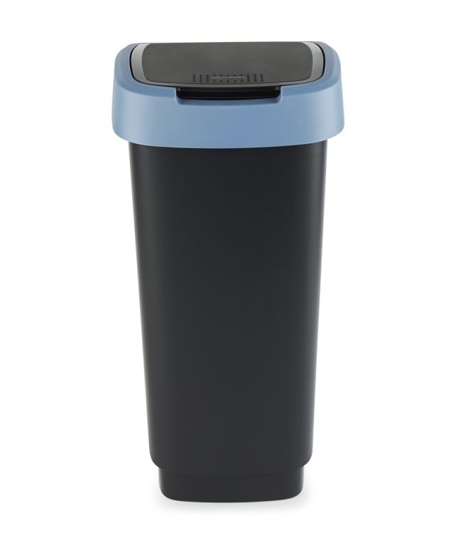 Plastový odpadkový koš s odklápěcím víkem. Dva způsoby otevření koše. Kvalitní materiál a provedení od švýcarské značky Rotho.