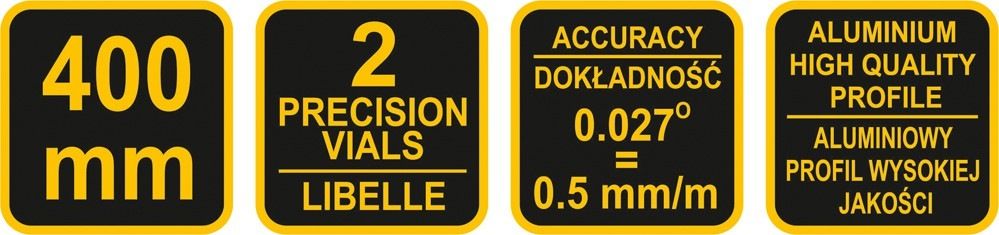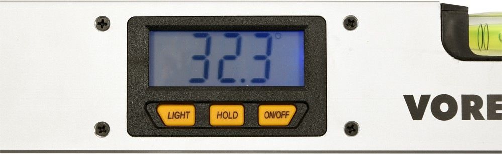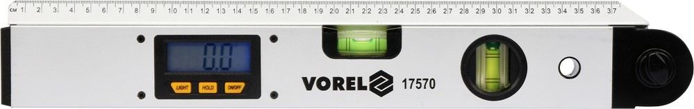 Elektronický úhloměr je navržen pro přesné stanovení úhlů v rozsahu 0° až 230° s přesností na 0,1°. Tělo úhloměru je vyrobeno z hliníkového profilu opatřeného 2x libelami. S jejich pomocí můžeme přesně odměřit libolné úhly. Pohyblivá část má délku 400 mm a je opatřena milimetrovou stupnici. Výsledky měření jdou snadno odečíst pomocí LCD obrazovky s podsvícením. Zařízení je opatřeno funkcí Hold - pro dočasné zablokování výsledku měření a funkcí automatického vypnutí, která chrání 9V baterii před vybitím a zvyšuje tak užitnou hodnotu úhloměru.