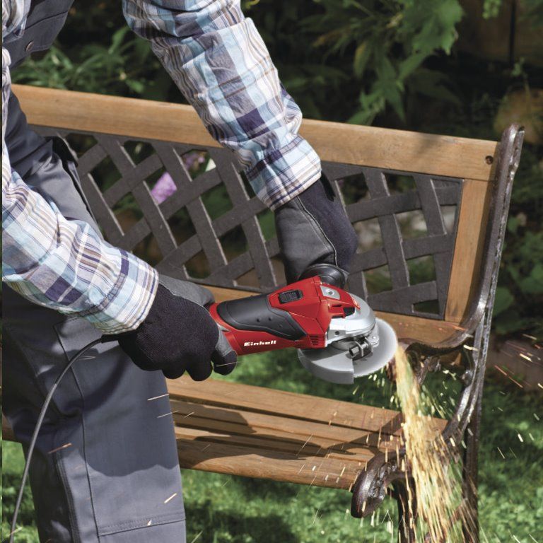 Úhlová bruska TC-AG 115 značky Einhell využívá pro práci rychlost 12 000 min-1 a příkon 500 W. V dělení i broušení vám bude pomáhat přídavná rukojeť, která jde nastavit do dvou pozic a ergonomicky tvarovaná rukojeť s měkčeným držadlem. Kotouč o průměru 115 mm chrání bezpečnostní ochranný kovový kryt (kotouče nejsou součástí balení) a snadno jej vyměníte pomocí zámku vřetena. Nízkoprofilová hlava převodovky umožňuje uživateli dosáhnout do těžko dostupných míst.