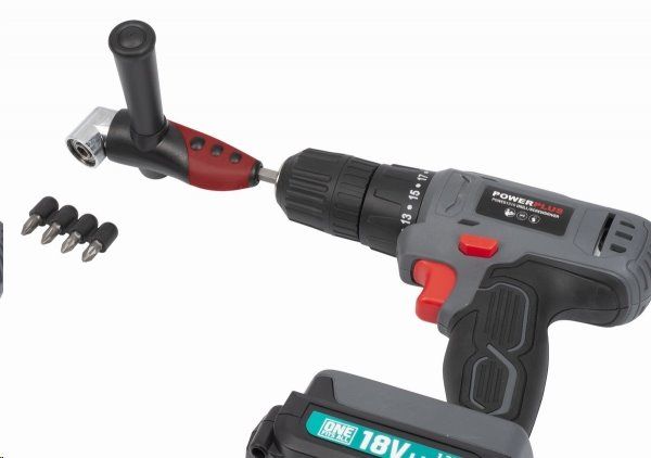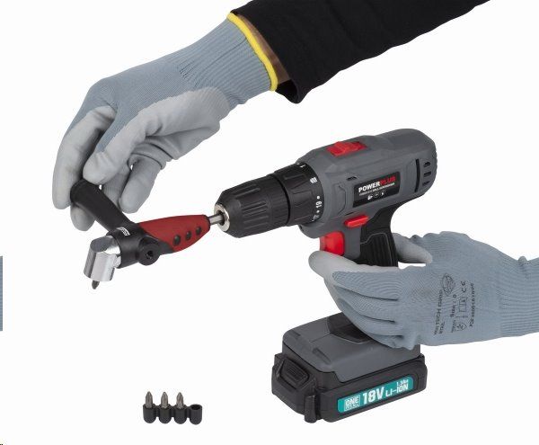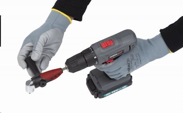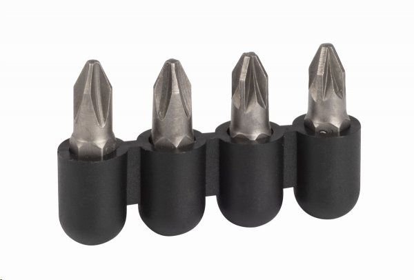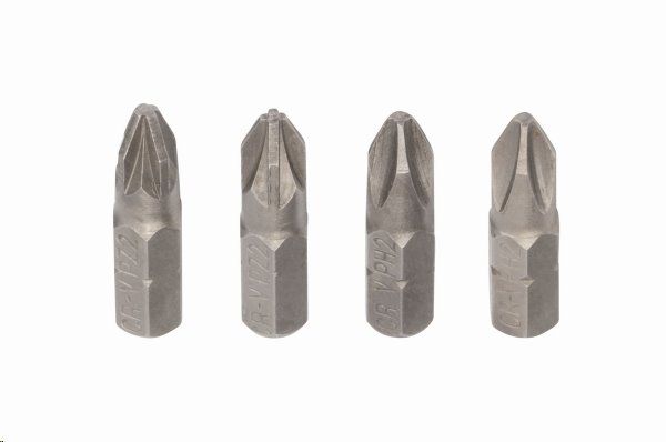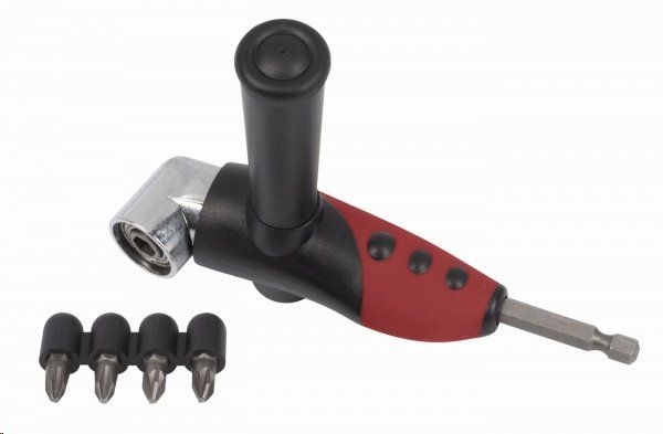 Úhlový držák bitů je dodáván se dvěma bity PH2 a dvěma bity PZ2 z CRV oceli a adaptérem 1". Součástí balení je přídavné držadlo pro lepší práci.