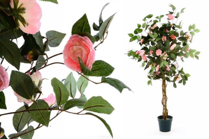 Krásná umělá kamélie s poupaty s kmenem z pravého dřeva a kvalitními textilními listy je ideální dekorací do tmavých prostor, kde se živým květinám nedaří. Užijte si pohled na stále zelenou rostlinu, kterou nemusíte pravidelně zalévat, přesazovat, ani o ni jinak pečovat. Větvičky i listy jsou ohebné, tuďíž je pouze na vás, jak bude palma nakonec vypadat.