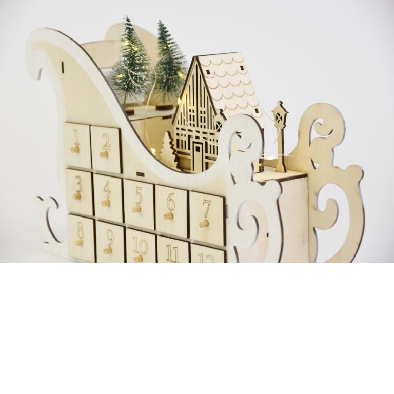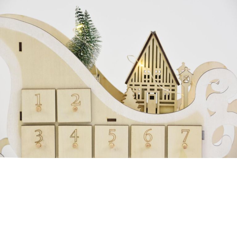 Vánoční adventní kalendář, sáně, 10 LED, na baterie