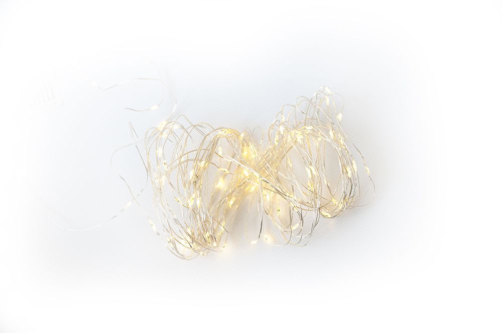 Netradiční světelný LED řetěz, kde jsou LED diody umístěny na jemném měděném drátku. Vánoční řetěz obsahuje také časovač, díky kterému se bude osvětlení po prvním zapnutí automaticky zapínat a vypínat. Vždy 6 hodin bude svítit a 18 hodin bude v nečinnosti. Osvětlení je napájeno na baterie, takže již nemusíte řešit vzdálenost k zásuvce.