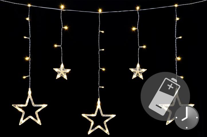Překrásná vánoční světelná dekorace - LED řetěz s hvězdami - rozzáří Vaše vánoční svátky. Určitě oceníte dálkové ovládání, které je součástí tohoto řetězu. Díky němu můžete nastavit 6 hodinový časovač svícení, stmívání barev a dalších 9 funkcí osvětlení. Osvětlení je vhodné pro vnitřní i venkovní využití, a díky napájení na baterie ho můžete umístit opravdu kamkoli.
