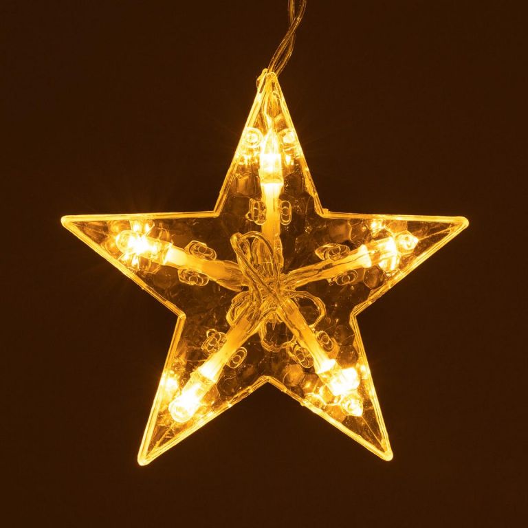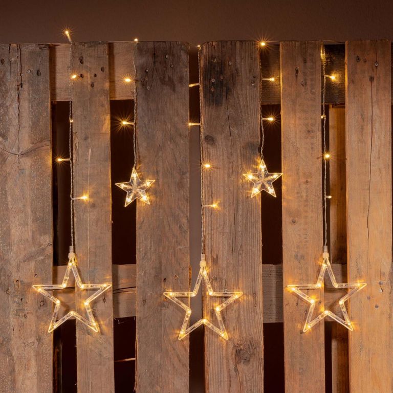 Netradiční prostorový řetěz s hvězdami se báječně hodí do Vašeho okna, do dveří i na zeď. Řetěz je napájen na baterie.