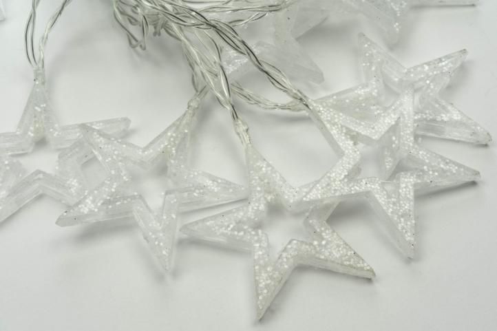 Vánoční osvětlení - třpytivé hvězdy, 20 LED, teple bílé