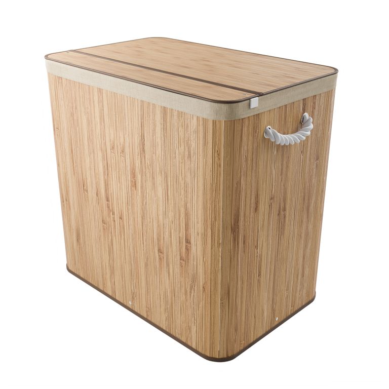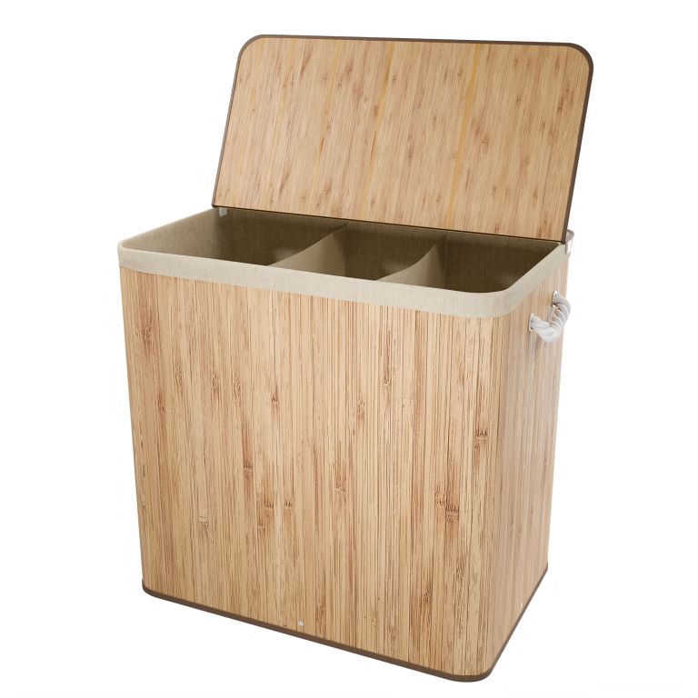 Velký bambusový koš na prádlo 150 l s víkem, tříkomorový
