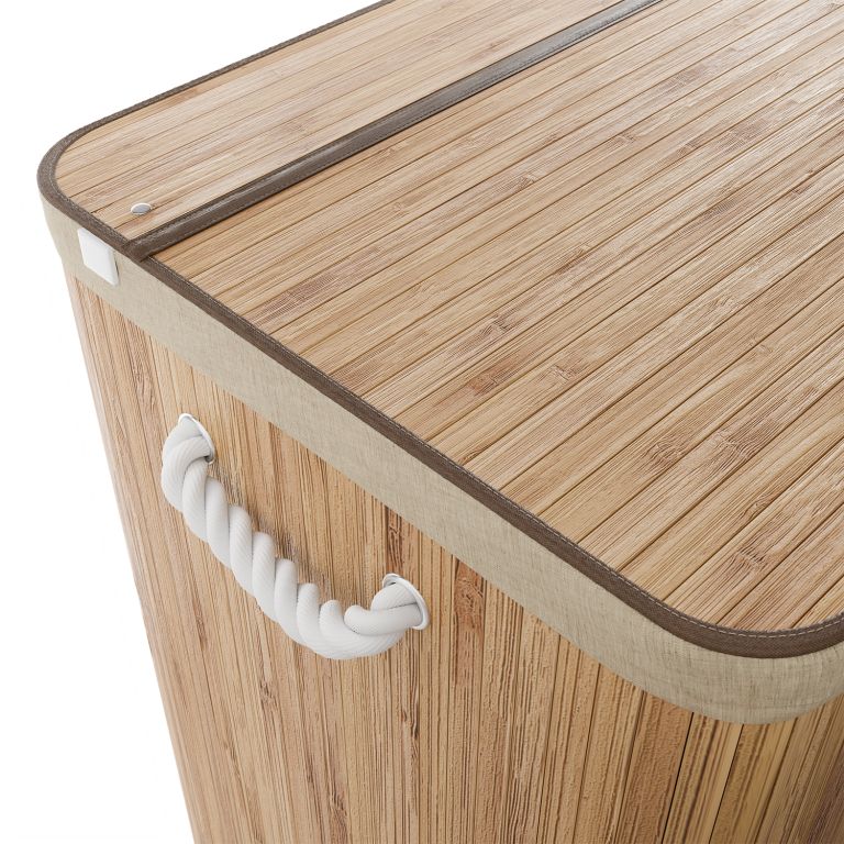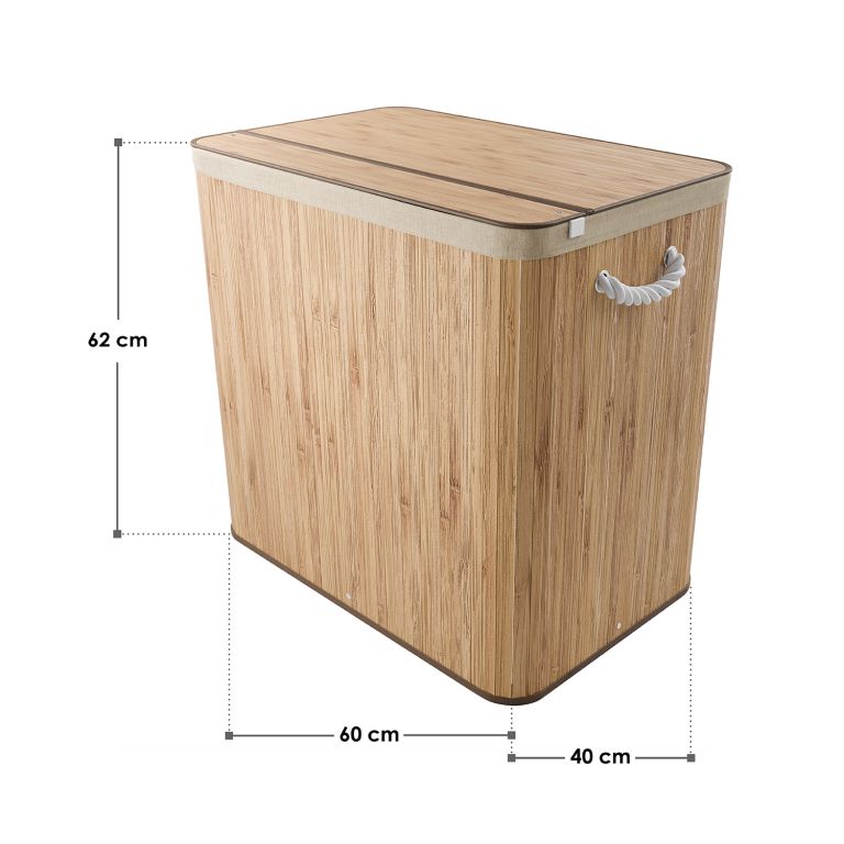 Robustní bambusová konstrukce je doplněna vyjímatelným textilním vakem, který lze snadno vyprat. Madla po stranách usnadní přenášení a víko zajistí, že prádlo zůstane diskrétně ukryté bez nepříjemných pachů. Tento koš na prádlo je ideálním řešením pro rodiny i všechny, kdo chtějí spojit funkčnost s estetikou.