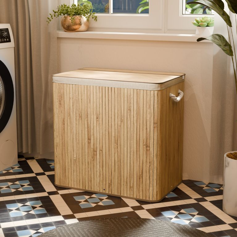 Objevte praktický a stylový způsob, jak mít prádlo vždy pod kontrolou. Bambusový koš na prádlo s kapacitou 150 litrů přináší do domácnosti přírodní eleganci a zároveň dostatek prostoru pro každodenní potřeby. Díky třem odděleným přihrádkám roztřídíte špinavé oblečení hned při odložení, takže praní se stane rychlejším a jednodušším.