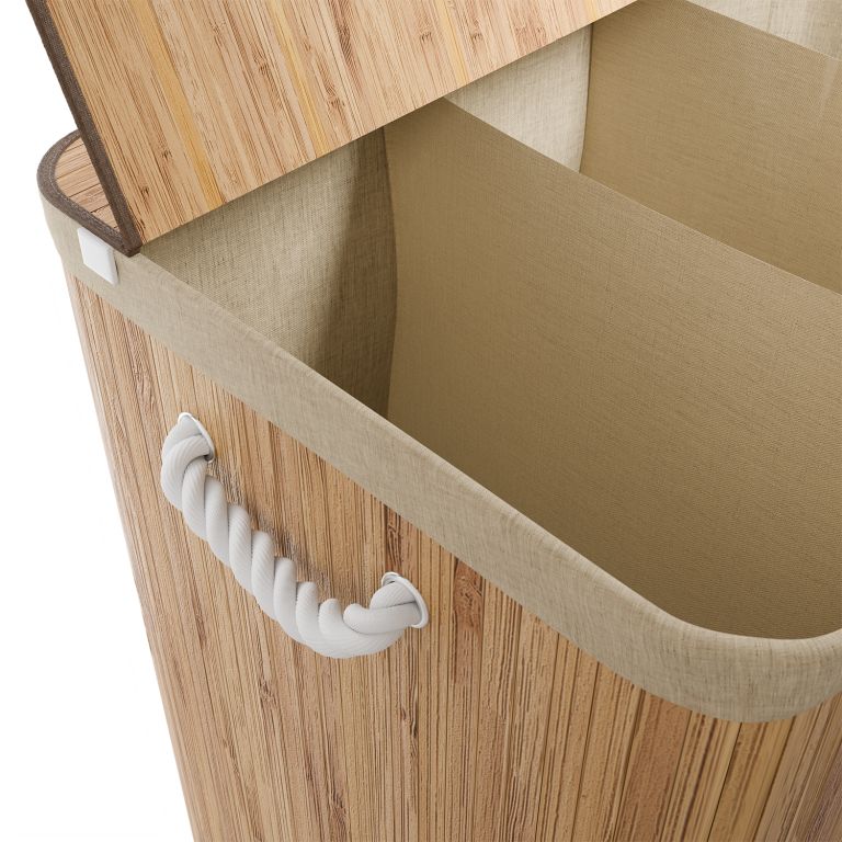 XXL koš na prádlo 150 l v bambusovém designu, s víkem a třemi přihrádkami pro snadné třídění bílého i barevného.