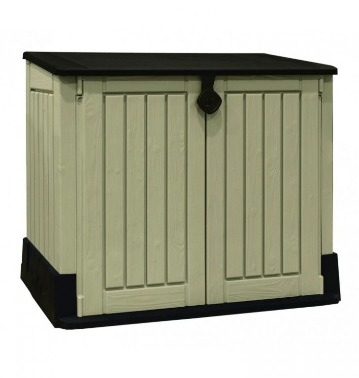 Plastová skříńka k uložení nejrůznějších předmětů - vhodná do zahrad, zahradních přístřešků. Otevření dveří do stran i horního poklopu.