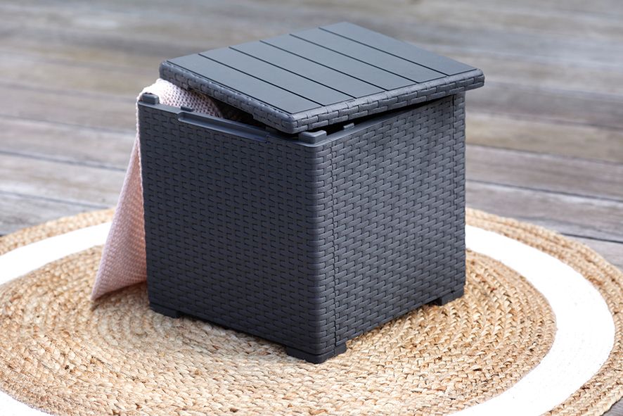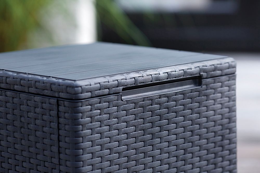 Jedná se o stůl, který navíc slouží jako úložný box. Lehká a stabilní konstrukce nábytku se skvěle hodí do exteriéru i interiéru. Výrobek je vysoce odolný proti UV paprskům a povětrnostním vlivům. Velkou výhodou je i jednoduchá údržba, snadné sestavení a manipulace.