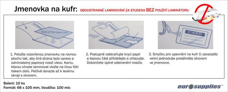 Jmenovka o velikosti 66×105 mm se vytvoří za studena vlepením identifikačního štítku d...