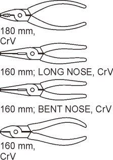 Zobrazit podrobnější popisSada 4 kusů kleští z CrV oceli. Kleště jsou přehledně srovnány ve vložce do zásuv...