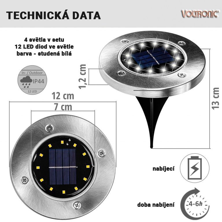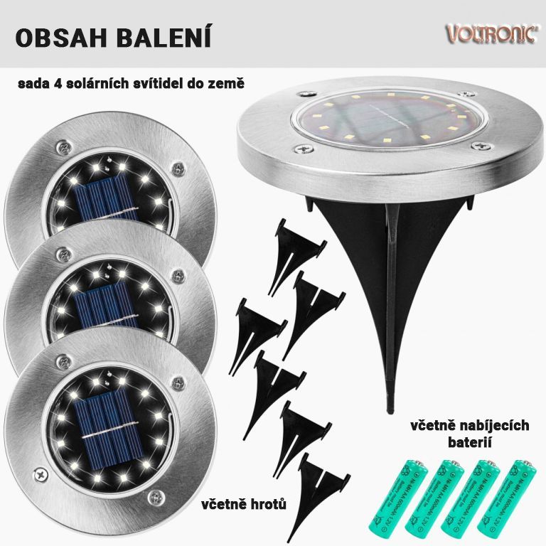 Voltronic Solární svítidlo do země, studená bílá, 4 ks