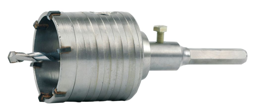 Vrtací korunka vybavena šesti řeznými vložkami vyrobenými z vysoce kvalitních karbidů, připájených k ocelovému tělesu mosazem. Hloubka korunky cca 50 mm. Vyměnitelný vrták 8 mm. Spirálově frézovaný vnější povrch pro lepší odstranění materiálu z vyvrtaného otvoru. Určeno pro vrtání do cihel nebo betonu.
