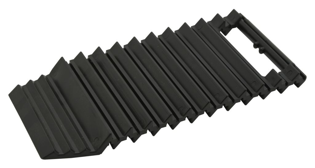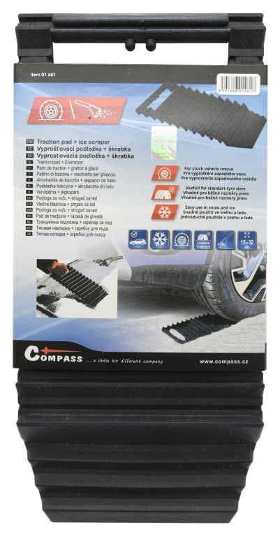 Konstrukce z pevného polypropylenu je uzpůsobená pro zvýšení trakce u prokluzujícího kola vozidla. Rozměry podložky 15 x 2,5 x 32,5 cm zabezpečuje použití pro všechny běžné rozměry pneu.