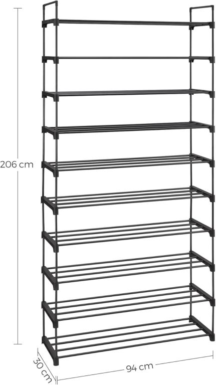 Tento vysoký botník je ideálním řešením pro každého, kdo potřebuje maximální úložný prostor na co nejmenší ploše. Díky 10 úzkým policím pojme až 50 párů bot, přičemž jeho subtilní konstrukce ponechá vaší předsíni nebo šatně stále vzdušný vzhled. Snadno zapadne do moderního interiéru a díky univerzální černé barvě nebude poutat nežádoucí pozornost.