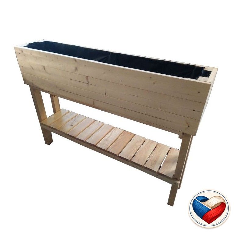 Vyvýšený záhon na nohách 124×26×87 cm s policí, česká výroba