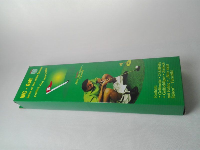 Nudí vás už čtení novin a přemýšlíte jak si zpestřit čas strávený na vašem "porcelánovém trůnu"? Jak lépe využít čas na záchodě, než tréninkem golfu. U této malé verze minigolfu můžete klidně sedět a trénovat jak dlouho chcete. Garantujeme vám, že se dobře pobavíte i v těch nevypjatějších situacích a po dobře zahraném míčku se dostaví úleva. Tomu se říká spojit příjemné s užitečným. Tímto originálním dárkem potěšíte každého zapáleného fandu golfu.