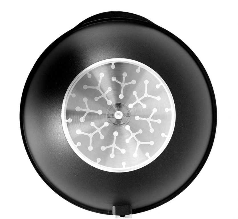 Velká wok pánev, která je vhodná na plotnu i do trouby o průměru 36 cm s dlouhou prohazovací rukojetí. Pánev je univerzální pro všechny typy ohřevů, teplo vede dokonale rovnoměrně, jídlo se na ní díky speciální nepřilnavé vrstvě nepřipaluje a k přípravě pokrmů nemusíte pánev vytírat olejem. Je odolná teplotám až do 240 °C i v troubě jak pánev, tak víko. Dno pánve o tloušťce 9 mm je složeno z 5 vrstev. Základní vrstva je z hliníku, následuje vrstva z oxidu titaničitého, ochranná vrstva proti korozi, keramická vrstva a nepřilnavost vnitřní strany pánve vrstva lotan nanášená speciální plasmovou polymerací. Skleněná poklice je z tvrzeného a odolného skla s úchytem pro snadné držení bez obav z popálení. Víko pánve má pod rukojetí důmyslně řešený otvor pro odvod horké páry.