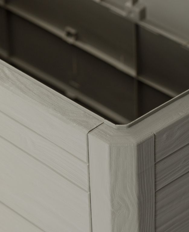 Hladký vzhled dřeva, neomezený úložný prostor a jednoduchá údržba - to vše přináší náš zahradní úložný plastový box WOODYS 280 litrů.