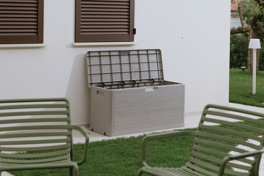 Hladký vzhled dřeva, neomezený úložný prostor a jednoduchá údržba - to vše přináší náš zahradní úložný plastový box WOODYS 280 litrů. Tento univerzální box je skvělým řešením pro Vaše venkovní potřeby a přináší Vám spoustu výhod: IMITACE DŘEVĚNÉHO POVRCHU: Díky svému designu, který věrně napodobuje dřevo, se tento box snadno začlení do Vašeho venkovního prostoru a dodá mu šmrnc. Jeho sametově hladký povrch dává pocit luxusu a kvality. 280 L ÚLOŽNÉHO PROSTORU: S objemem 280 litrů máte dostatek místa pro uložení podušek, nářadí, hraček, nebo čehokoli jiného, co chcete mít venku na dosah ruky. BEZPEČNÉ UZAMYKÁNÍ: Díky zabudovanému zámku můžete váš majetek udržet v bezpečí a chráněný před nepovolaným přístupem. SNADNÉ SESTAVENÍ A ÚDRŽBA: Montáž tohoto boxu je opravdu snadná a nevyžaduje žádné nářadí. Stačí ho rychle poskládat, a už můžete začít s jeho používáním. Pro udržení krásného vzhledu tohoto boxu stačí použít obyčejnou mýdlovou vodu a hadřík. Nemusíte se bát o jeho vzhled ani po dlouhých obdobích venku. EKOLOGICKÝ PŘÍSTUP: Box WOODYS 280 L je vyroben z recyklovaných materiálů, což pomáhá snižovat ekologickou stopu a je šetrný k životnímu prostředí. Navíc je odolný vůči UV záření, takže si můžete být jisti, že si zachová svou krásu i při dlouhodobém působení slunečního záření. S naším zahradním úložným plastovým boxem WOODYS 280 litrů získáte praktický a stylový doplněk pro svůj venkovní prostor, který Vám pomůže udržet věci v pořádku a v bezpečí. Buďte připraveni na každý venkovní dobrodružství s tímto skvělým úložným řešením od nás!