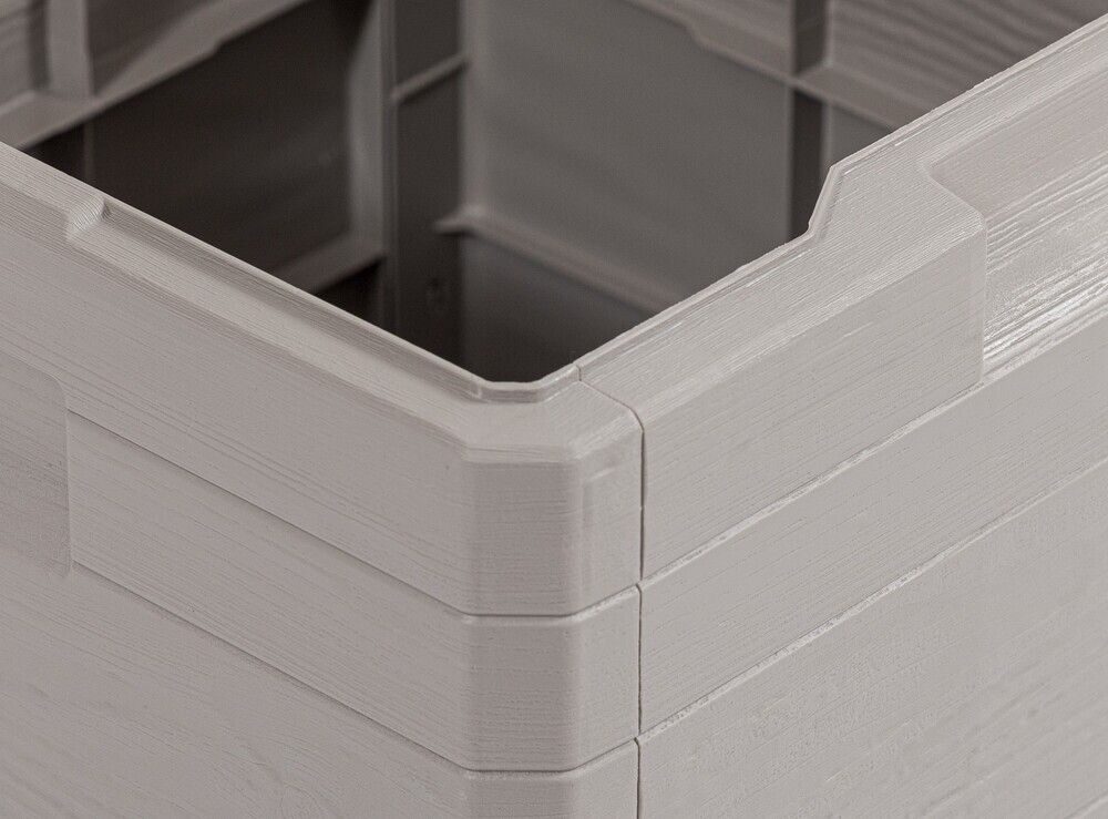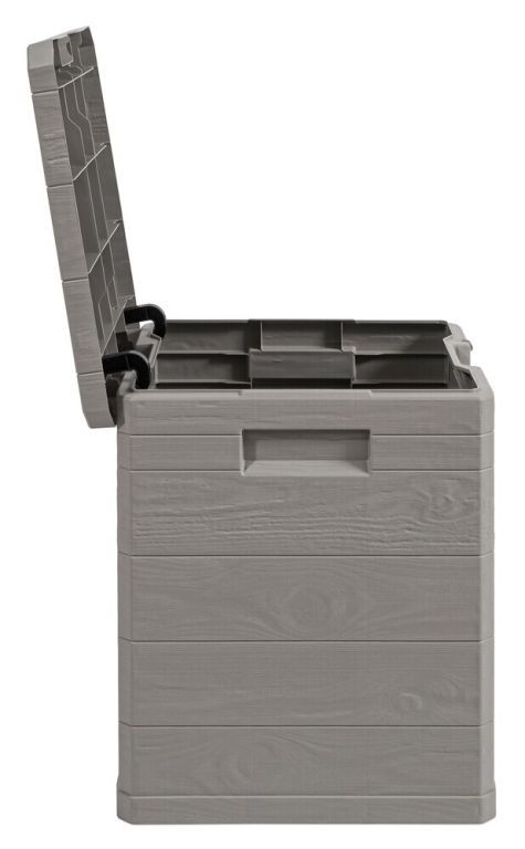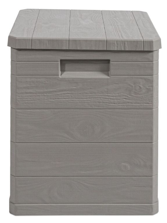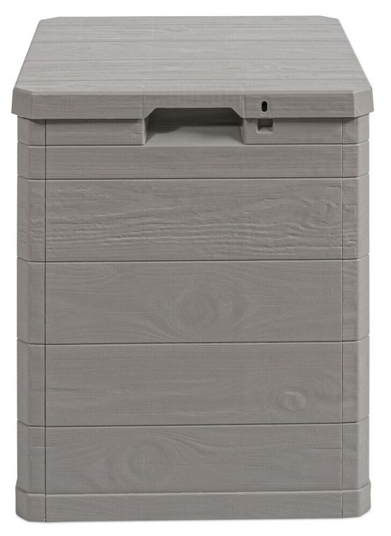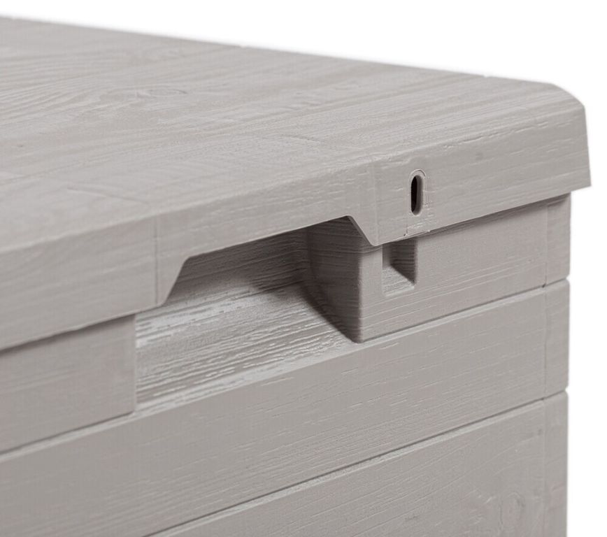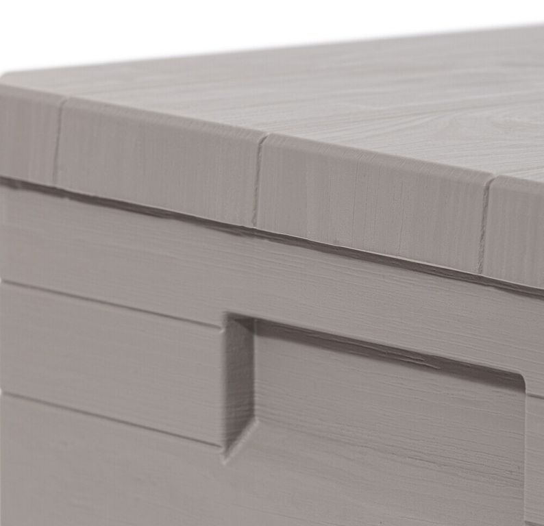 IMITACE DŘEVĚNÉHO POVRCHU: Díky svému atraktivnímu designu se tento box skvěle hodí do jakékoli zahrady nebo na terasu. Jeho imitace dřevěného povrchu přidává do prostoru příjemný rustikální šarm.