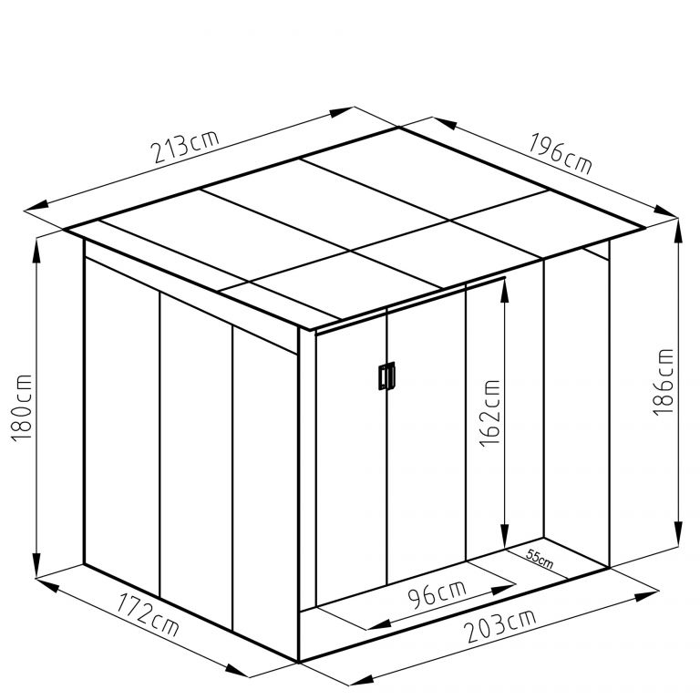Tento zahradní domek na nářadí v moderním designu má dvoje posuvné dveře a vysoký vstupní otvor, takže do něj budete mít pohodlný přístup.