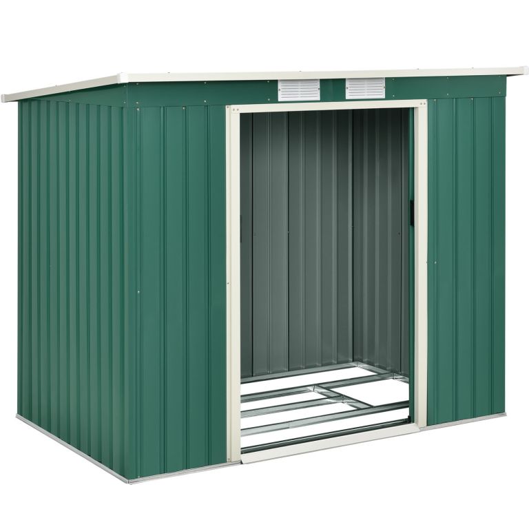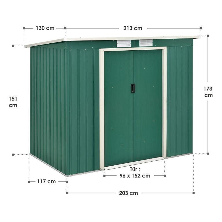 Stabilní konstrukce z pozinkovaného plechu zajišťuje dlouhou životnost a minimální údržbu. Pultová střecha a základový rám usnadňují montáž a chrání obsah před vlhkostí i nečistotami.