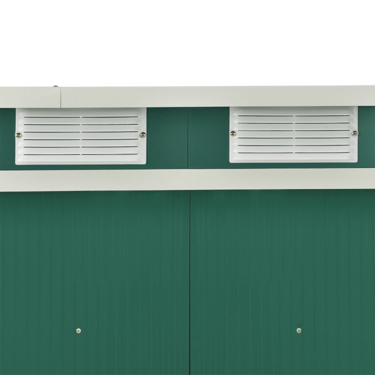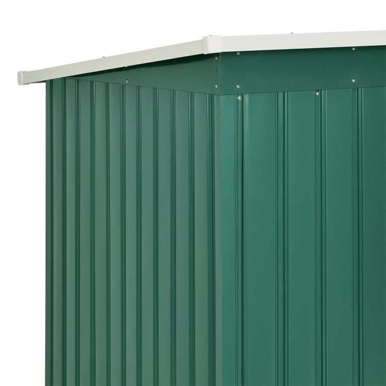 Užijte si pořádek a klid na své zahradě díky tomuto prostornému domku na nářadí. Moderní tmavě zelený design se hodí do každého prostředí a poskytne bezpečné místo pro vaše vybavení i v zimě.