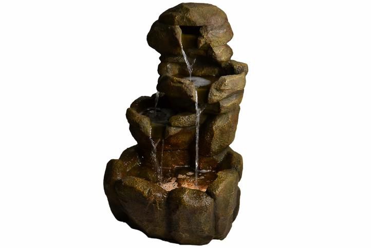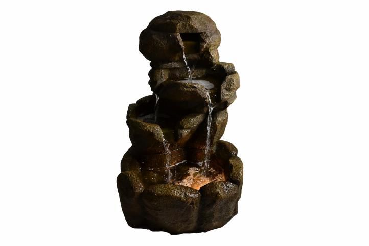 Elegantní kaskádovitá fontána imitující kámen. Voda stéká po realistickém ztvárnění skal, přes jednotlivé přepady, integrované světlo pod vnějším přepadem dodává kouzelnou atmosféru. Součástí fontány je elektrické čerpadlo, které zaručí neustálý koloběh vody. Kašna je vyrobena z polyresinu, který je jednou z forem pryskyřičných materiálů, které jsou velice odolné proti povětrnostním vlivům. Fontána není mrazuodolná - na zimní měsíce musí být uložena, aby nebyla vystavena mrazu.