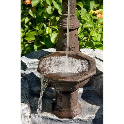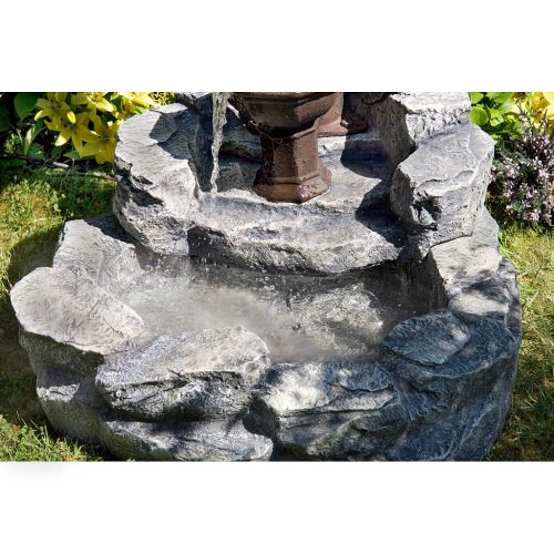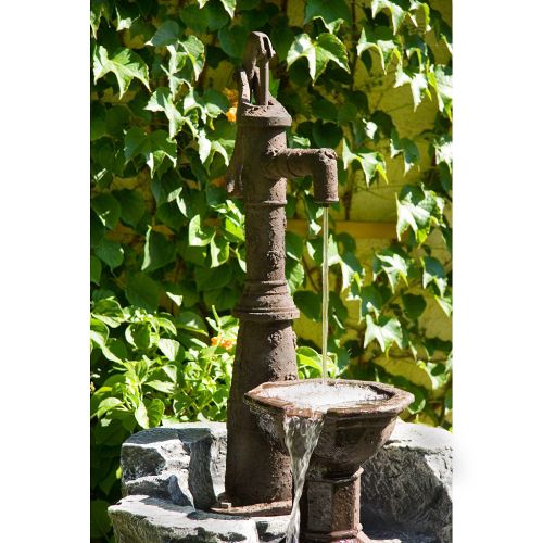 Tato krásná kašna s ruční pumpou bude ozdobou vaší zahrady . Kašna je vyrobena z polyresinu, který je jednou z forem pryskyřičných materiálů. Polyresin je velice trvanlivý, skvěle odolává povětrnostním vlivům a je prakticky nerozbitný. Díky povrchové upravě vypadá polyresin například jako dřevo, mramor, žula, měď, bronz, terakota, kámen atd. Kašna má elektrické čerpadlo, ruční pumpa je pouze dekorativní a nefunkční . Voda protéká čerpadlem stále v oběhu.