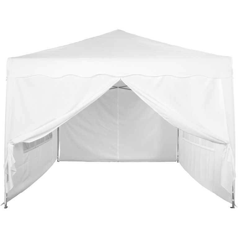 Praktický altán pro zahradní oslavy. Bílá barva.